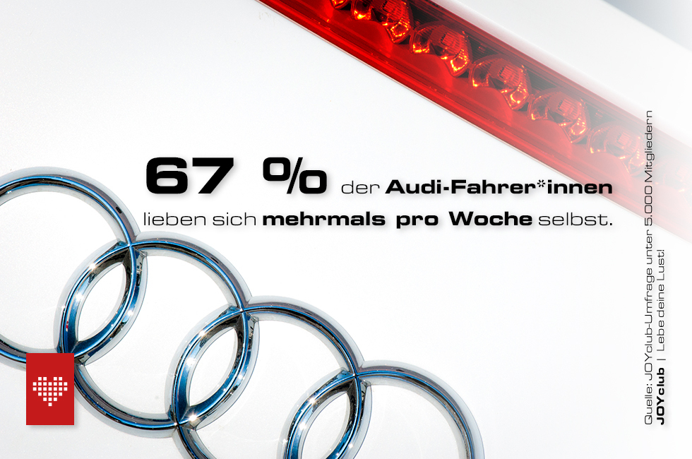 Geht es um die Häufigkeit des vollführten Liebesaktes, sind die deutschen Automarken Weltmarktführer. Voll auf ihrer Kosten kommen neben den Fahrer*innen von Porsche – stolze 75,4 % von ihnen geben an, täglich oder zumindest mehrmals wöchentlich Sex zu haben – die Halter der Traditionsmarken Audi (55,3 %) und BMW (54,8 %). Opel und Citroen heißen hingegen die sexuellen Schlusslichter dieses Rankings. Knapp jeder Vierte dieser Autobesitzer beschreibt sich als sexuell deprimiert.